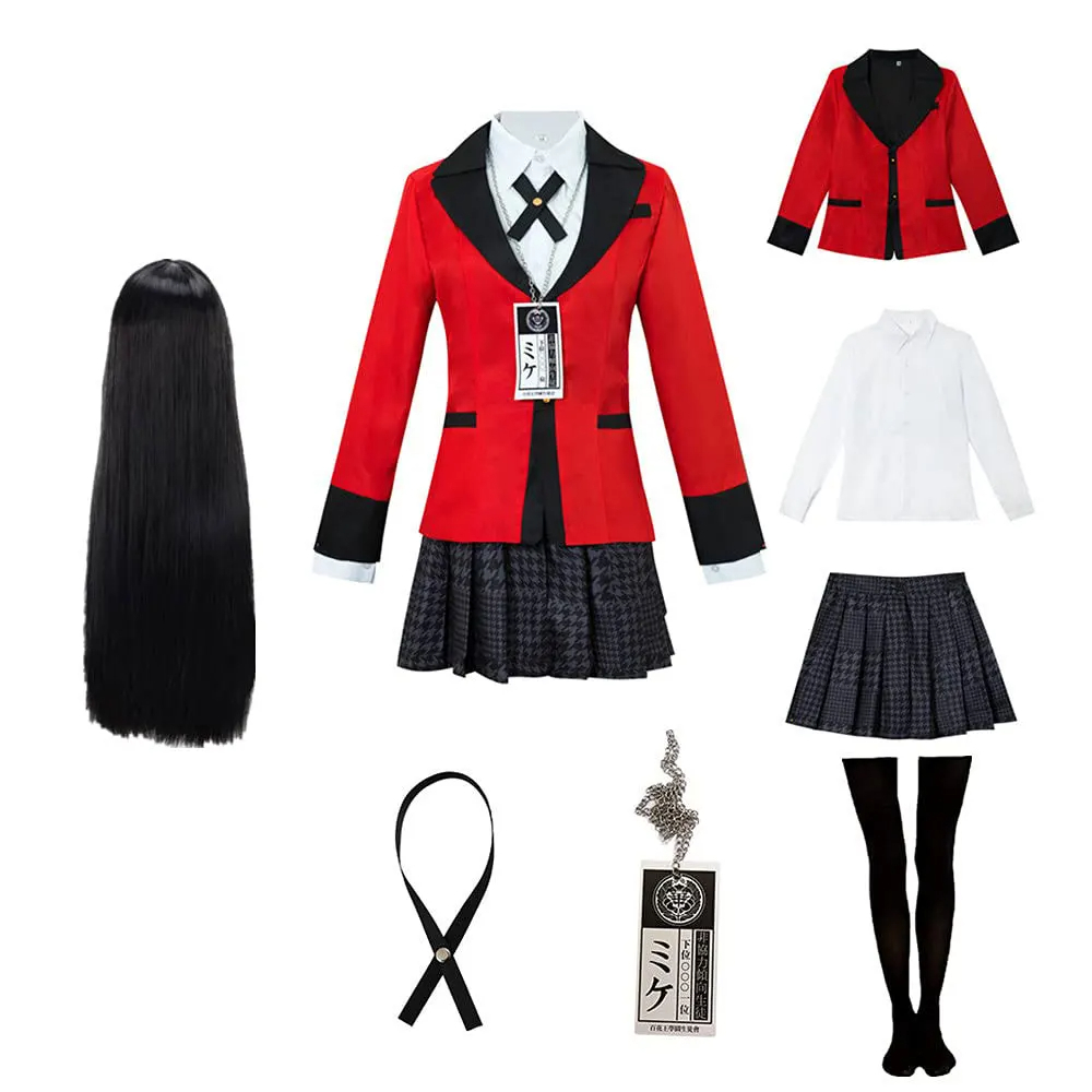 KAKEGURUI YÜMEKO JABAMI Kırmızı Siyah Takım Üniforma 7-piece Set kadın Kostüm