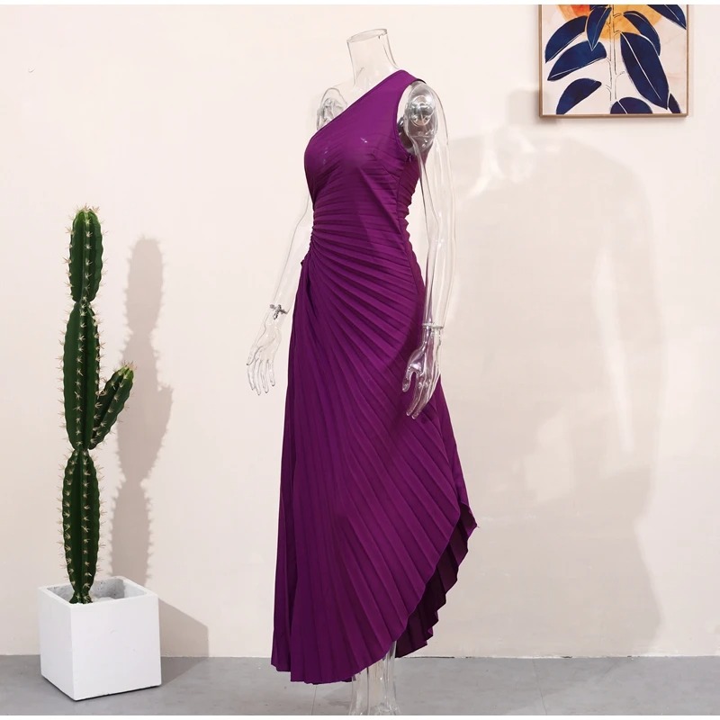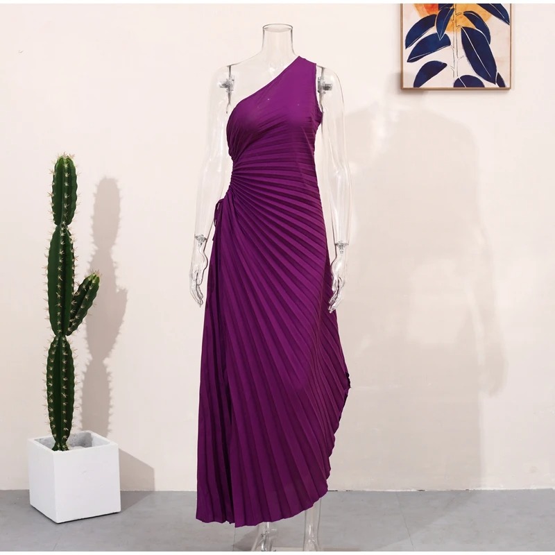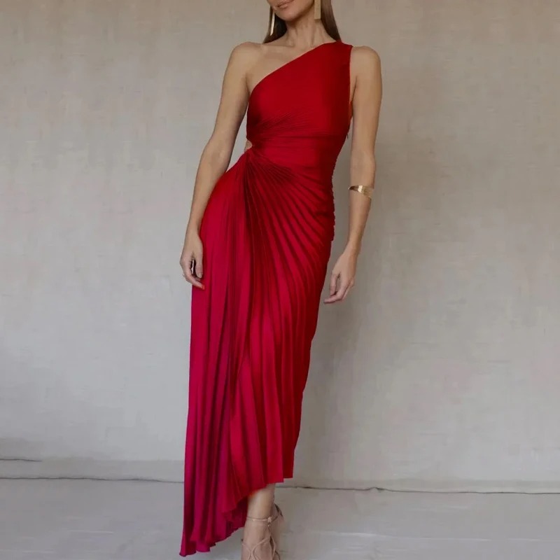 Kadın Tek Omuz Eğik Yaka Zarif Elbiseler